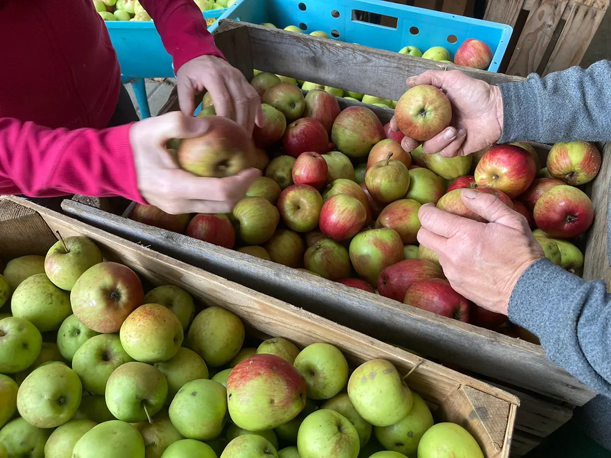 Die reiche Obsternte ermöglicht es, dass wir diesen Samstag nochmals nach Titterten zum Mosten fahren. Die abgelesenen Äpfel sortierten wir wieder nach Lagerfähigkeit und Mostqualität.