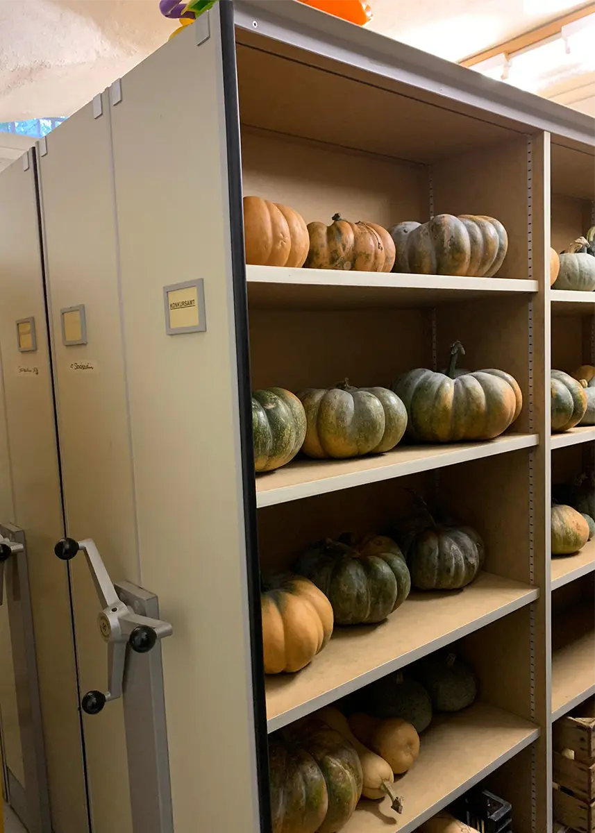 Die Kürbisse wurden von euch am Mitmachtag geerntet und in das neue Folientunnel zum Ausreifen gelegt, nun durften sie ihr Winterquartier beziehen. Der Ort muss eine mindestens Temperatur von ca. 12 Grad aufweisen. In der alten Bezirksschreiberei in Waldenburg bei Familie Uhlig haben wir einen idealen Winterplatz gefunden. Mit dem Lift fuhren die Kürbisse in den Keller, wo früher die Akten aufbewahrt wurden, ruhen nun unsere Solimatt Kürbisse. So schön. Herzlichen Dank der Familie für die Betreuung.